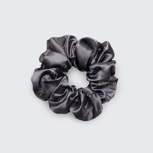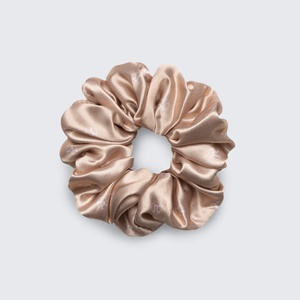 This assorted pack of 4 contains 1 charcoal, 1 pink, 1 rich cream, and 1 golden satin scrunchie.